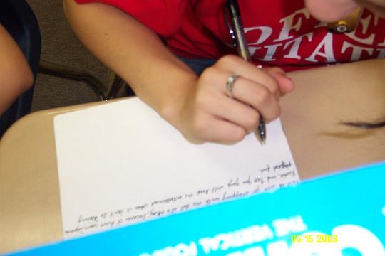 5. Stolen pic of Savannah hiding her writing in Gail's autograph book