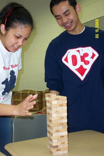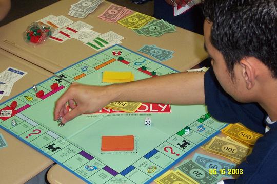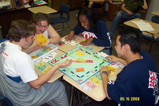 25. Me, Mike, Hope, an Chrissy havin a ball in monopoly in Collin's